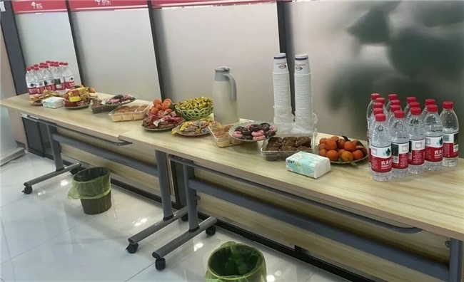 宣講結束后,企業貼心準備了精致的甜點與飲料,供師生們在輕松的氛圍中繼續交流。 同學們一邊品嘗茶歇,一邊與HR和技術人員面對面溝通,現場氣氛溫馨而熱烈。